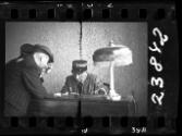 A Jewish policeman sitting at a desk, with another policeman and an unidentified man