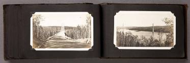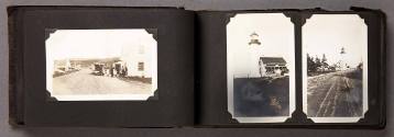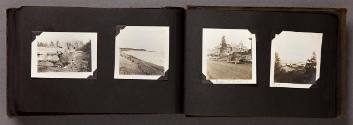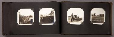 Mediumalbum: 124 gelatin silver prints and 1 litho. postcard in a black cloth covered album with black string binding