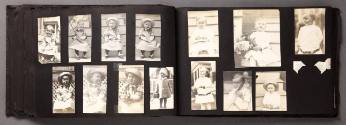 Mediumalbum: 499 gelatin silver prints, 3 photo postcards (gsp), 1 printing out print, 1 chromogenic print and 11 gelatin silver prints with applied colour in a black album