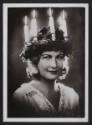 Woman with lit candles in her hair. Lucia of Stockholm.