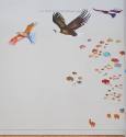 Mediummixed media installation: maple, red willow, unidentified twigs, paper, sea grass, buffalo hide, moose hide, felt, copper and nickel beads, shells, acrylic, high resolution digital files