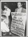 Two men stand with a hand written placards against the Great Synagogue of Rome attack