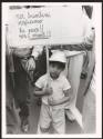 A child holding a banner calling for peace against the nuclear missiles