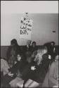 People assemble for a meeting of the M.L.D- Movement for the Liberation of Women
