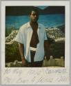 To: My love Carmen. For Ever [I?] Love You. [Man with moustache standing in unbuttoned short-sleeved shirt, lake scene behind him]