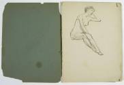 Mediumsoft blue-green paper cover sketchbook, 6 pages, with graphite, charcoal drawings on wove paper