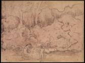 Mediummonoprint and watercolour (recto); charcoal and red pencil (verso) on wove paper