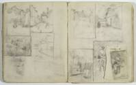 Mediumpaper covered hardcover sketchbook, 57 pages, with graphite, black pencil drawings on wove paper