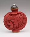 Snuff Bottle, with carved depiction of children in a garden